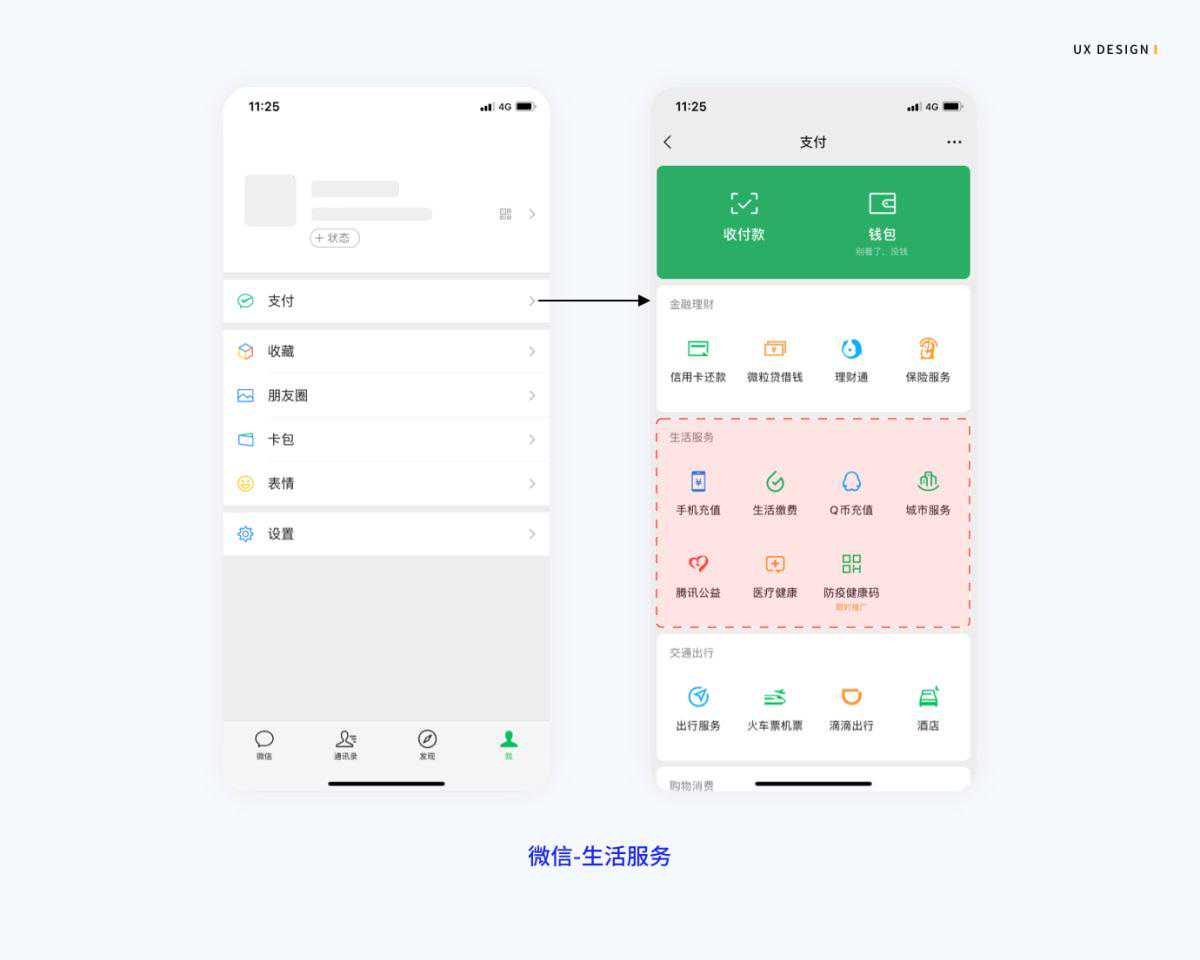 但是假如有人让你找一下微信里面“生活服务”的入口,你可能会先想一下可能出现在什么入口,这就是因为平时比较少用导致的。