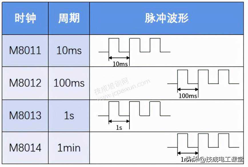 内部时钟继电器和定时器一样,都是触点利用型继电器,但它的时间周期是不可变的,一旦PLC上电,它们就会工作,输出时钟脉冲。