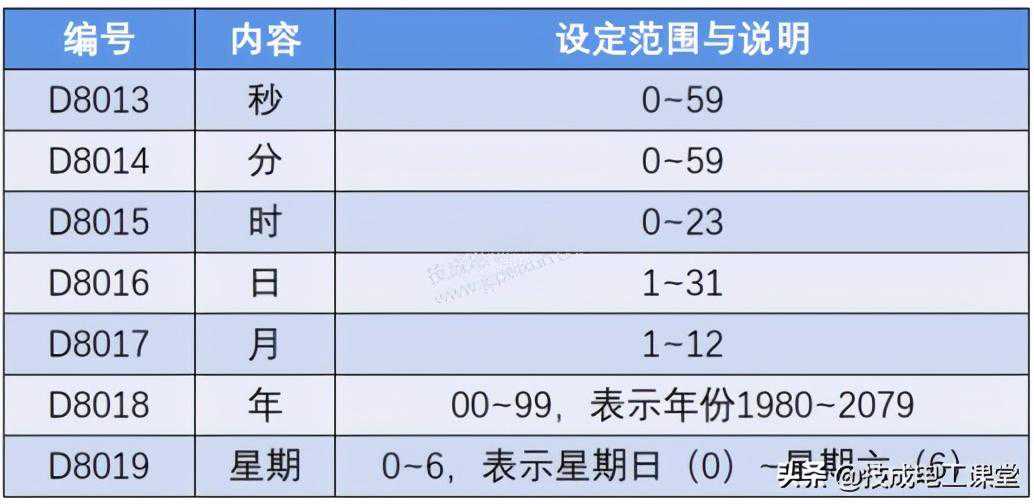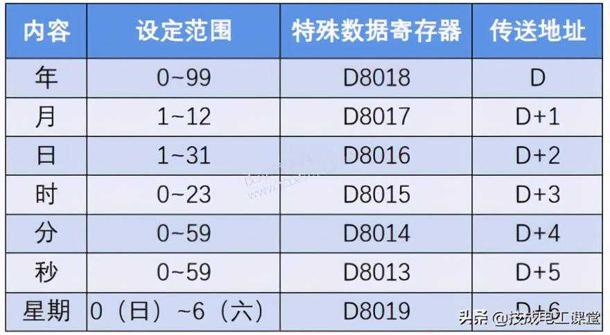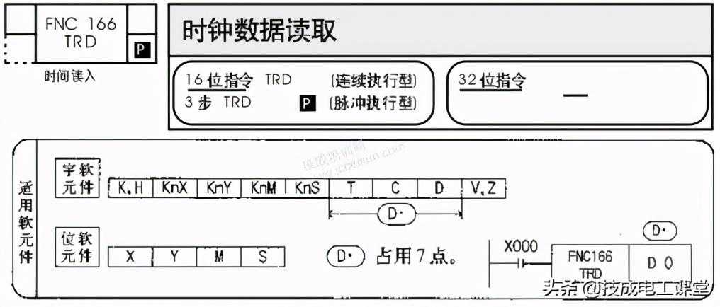 指令的功能就是当驱动条件成立时,把实时时钟的时间数据读取出来,存放到D~D+6中。