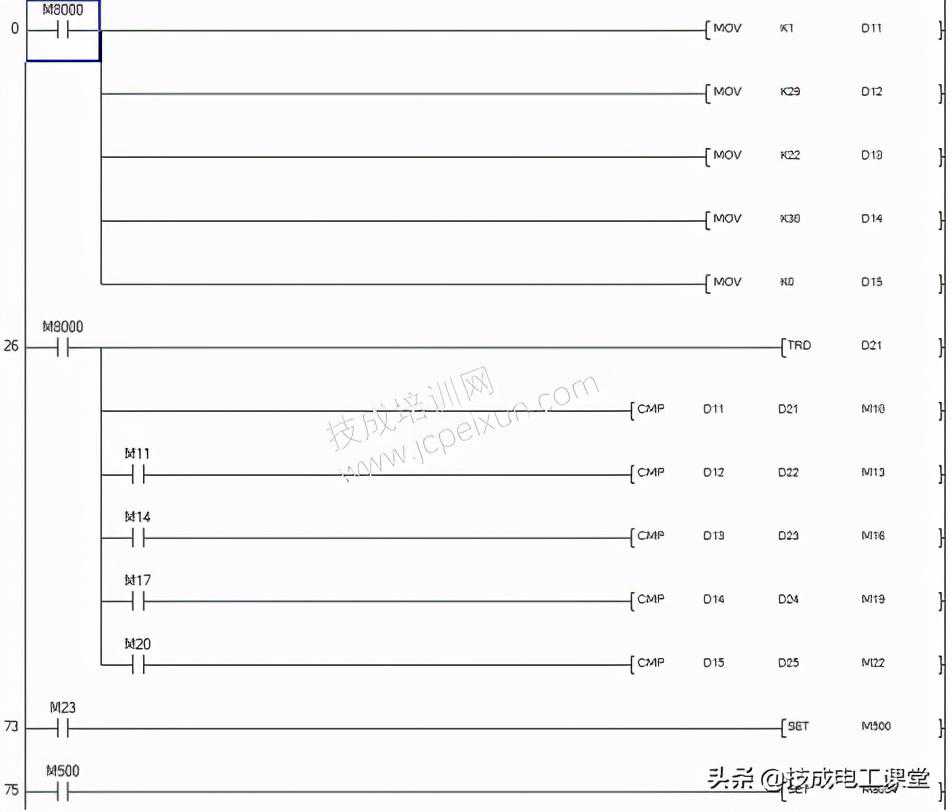 这里要注意到是,当我们在设置时间的时候,应提前编写好梯形图,例如要将时间设定为2021年1月25日16时40分30秒,我们应提前1~2分钟,也就是在16时38分左右就要将梯形图编好,然后等时间到达设定时间,驱动指令执行。