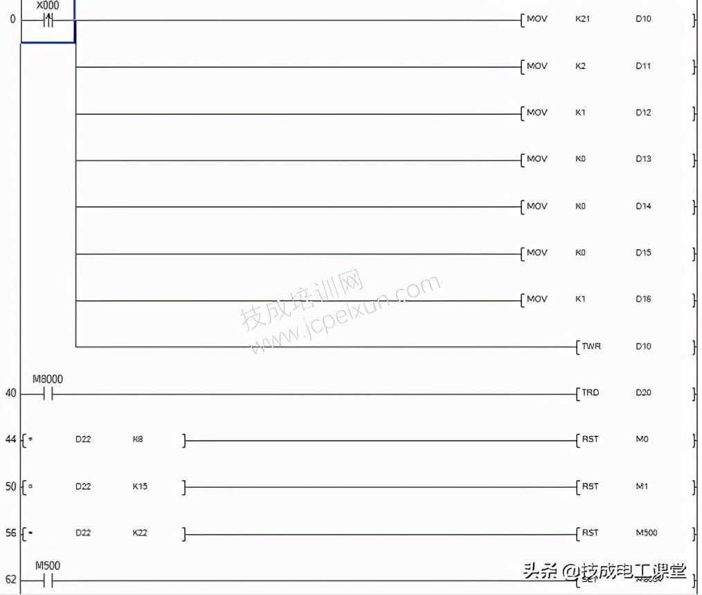 03、TWR指令和TRD指令的应用示例TWR指令和TRD指令都比较简单,它们在实际的应用中也很方便,如对设备的定时通断电、定时操作等。