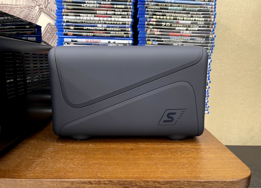 外观相比它背后的这一堆碟片来说还是非常小巧的,表面采用了磨砂亲肤材质不容易沾指纹。采用了纯色设计,极空间Z2S一共有七种颜色,因为家里装修偏中式,所以我购买的是天空灰,和家具颜色不冲突。