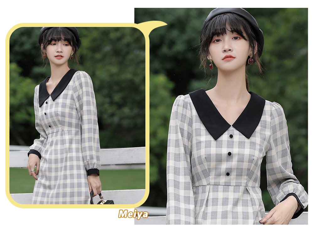 而且呢芽芽觉得娃娃领的连衣裙不但单穿很适合,也很适合叠穿起到1+12的效果,比如和背带裙一起穿,是不是很特别。