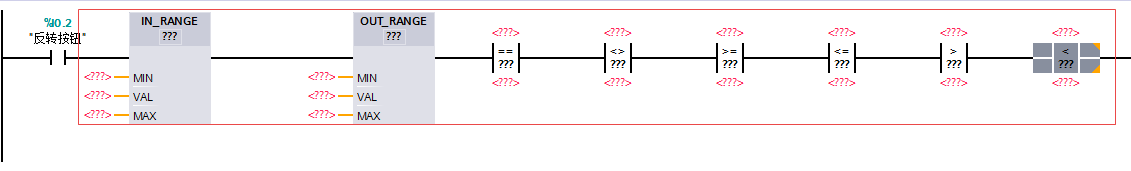 如果要比较数据类型REAL或LREAL,使用指令“IN_RANGE:范围内的值”,而不是指令“CMP==:等于”。
