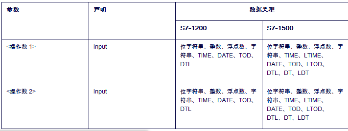 “小于或等于”指令判断第一个比较值(操作数1)是否小于或等于第二个比较值(操作数2)。要比较的两个值必须为相同的数据类型。