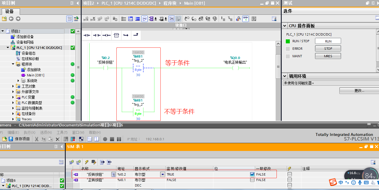 “等于”指令判断第一个比较值(操作数1)是否等于第二个比较值(操作数2)。