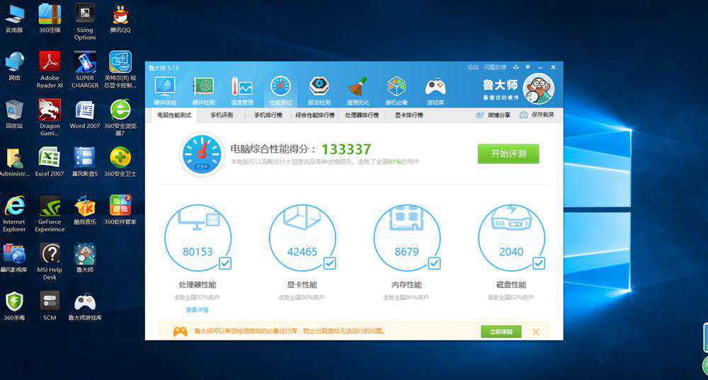 对于一款游戏本来说,硬件配置才是玩家选择的重要考虑,“小龙”配备了英特尔第六代酷睿i56300HQ处理器,搭载8GBDDR4-2133MHz内存,1TB机械硬盘,另外还采用了NVIDIAGeForceGTX950M独立显卡。通过鲁大师跑分达到了13W+的成绩,这样的成绩表现还是非常出色的。