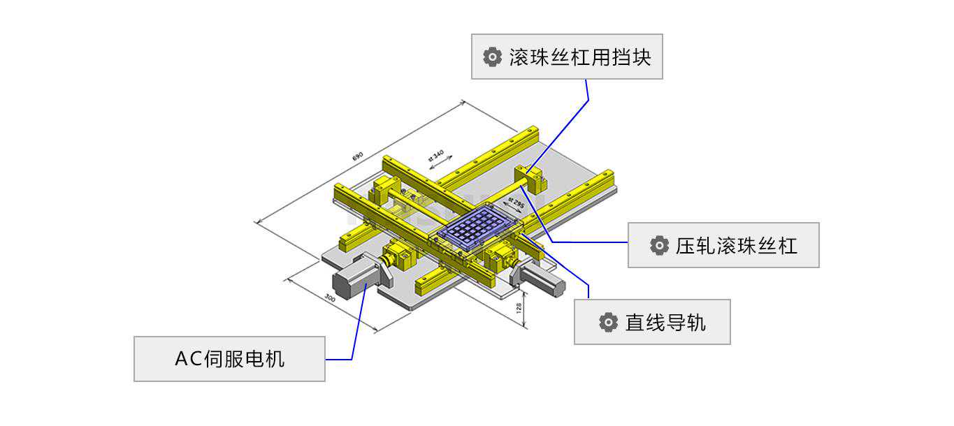 在伺服电机中,AC伺服电机使用方便、无需维护、性价比高,广泛应用于工业机器人、精密机床、精密测量台、移载臂、排线贴装等设备。如图2所示,AC伺服电机与滚珠丝杠、直线导轨配合使用,可以利用伺服电机的速度、位置控制精确设定工作台的移动速度、位置等。在手机贴装的机构中,伺服电机的扭矩控制可以防止压力过大破坏零件,以及用在对拧紧力矩有上限要求的机构中。同样,AC伺服电机还可以搭配同步带、齿轮齿条、分度盘等传动元件组成不同功能的工业设备。