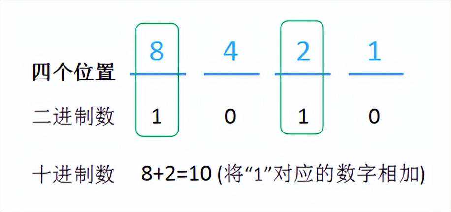 8421码是最常用的一种BCD编码方式,在这种编码方式中,每个十进制数字都由对应的四位二进制值表示,二进制值每一位的“1”都代表一个固定数值。将每位“1”所代表的十进制数加起来就可以得到它所代表的十进制数字。因为代码中从左至右看每一位“1”分别代表数字“8”“4”“2”“1”,故得名8421码。
