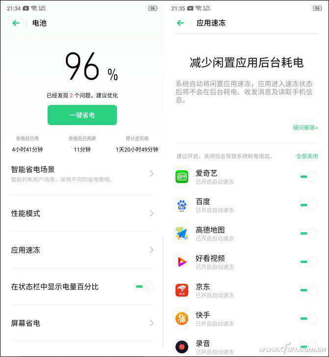 realmeQ内置4035mAh的大容量电池,并在系统层面引入了AI冻库功能,可以智能预测用户应用的使用情况,对不使用的应用进行快速冻结,达到省电的目的。