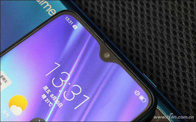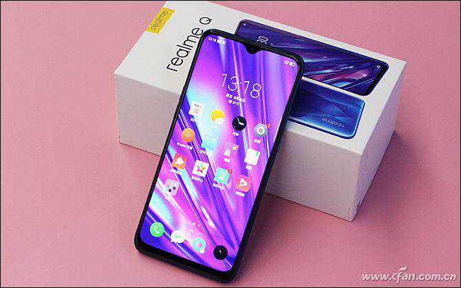 realmeQ采用了时尚的水滴屏设计,将前置摄像头嵌入到了优雅的“小水滴”内,并通过更高精度的屏幕点胶工艺实现了更好的黑边控制,屏占比高达90.6%,从而让6.3英寸的屏幕显得更加震撼。