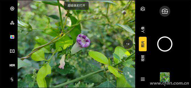 在拍照界面,我们还能一键开启realmeQ的超级焕彩功能,利用AI引擎识别场景信息,通过引擎独有的人类视觉模型,可以让拍摄的照片更有层感,在确保人眼所见真实的基础上赋予画面更强的生命力。
