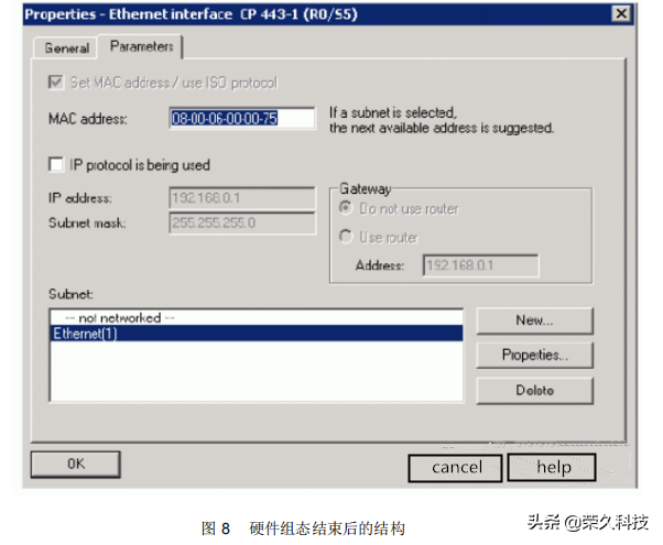 为CP443-1设置参数,创建并选择“Ethernet(1)”;