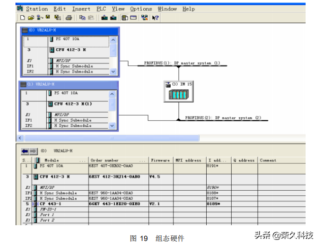 2.1新建一个Step7项目,且进行相关组态硬件(如图19)。