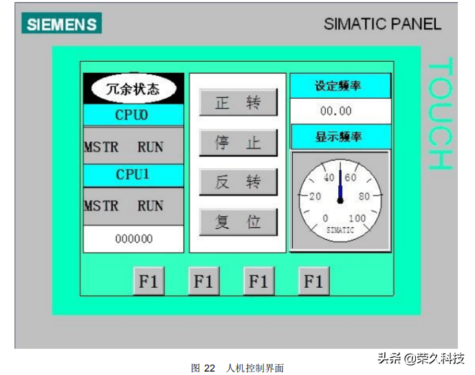 4.2在三相变频电机正常运行时,通过模拟工业现场CPU故障,切断正在主控运行的PLC电源,此时冗余PLC承担主控,电机保持之前的状态运行,实现了冗余控制功能。