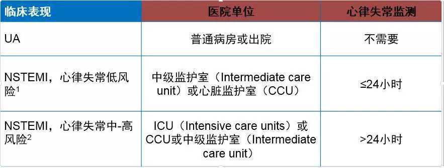 图2:心律失常监测示意图(心律失常中-高风险包括:血流动力学不稳定,主要心律失常,左心室射血分数40%,再灌注失败,额外的冠脉大血管狭窄或与PCI相关的并发症。)