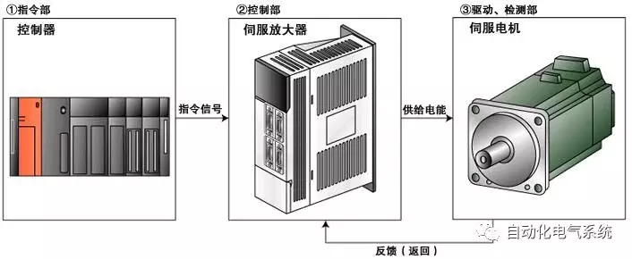 伺服系统由伺服系统控制器、伺服放大器、伺服电机组成