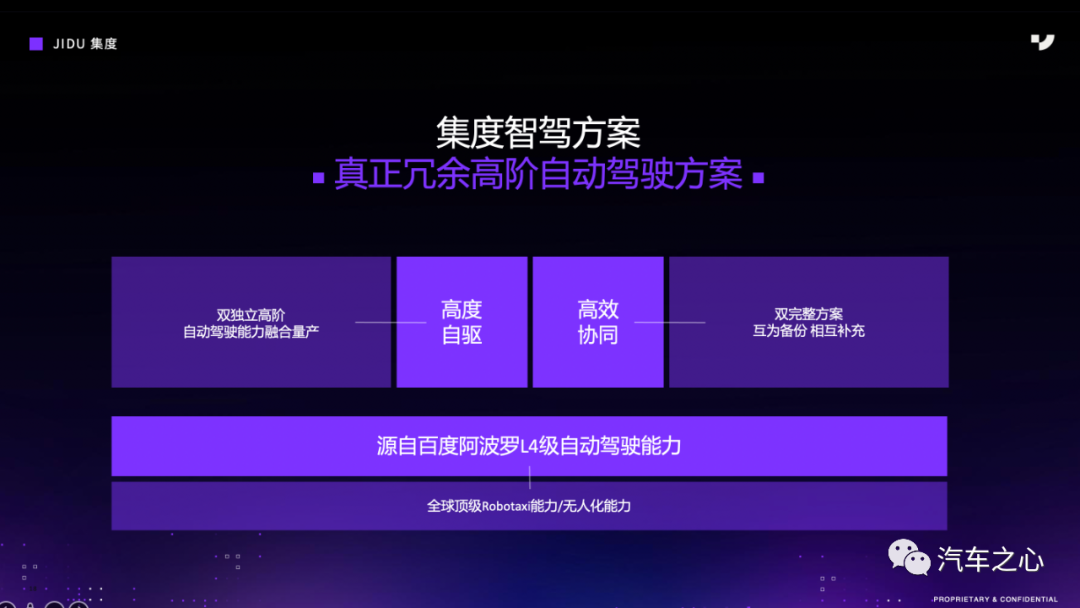 据王伟宝介绍,集度的这套真正冗余系统,以底层百度ApolloL4级自动驾驶能力为支撑,在双感知系统中能够做到高度自驱、高效协同的真正冗余高阶自动驾驶方案。
