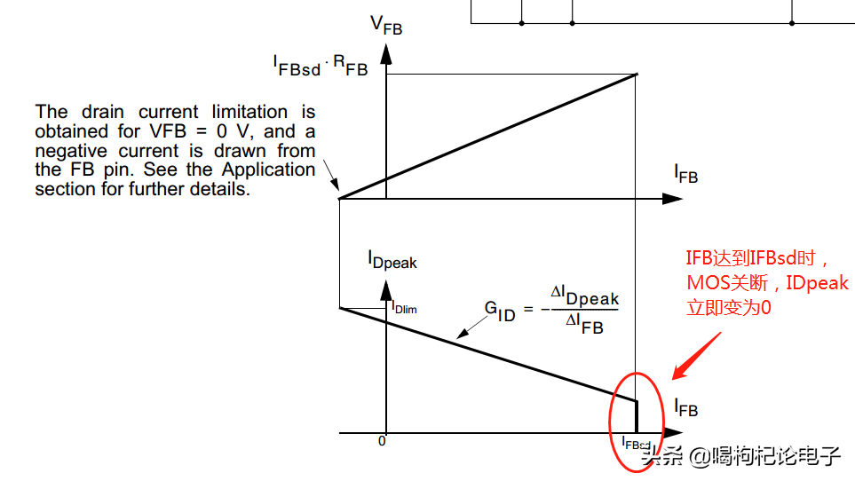IFBsd为芯片内部设定的阈值(如上图3),正常工作时IFBIFBsd,当IFB超过这个阈值(0.9V)时,内部功率MOS会停止开关。如下图7,8