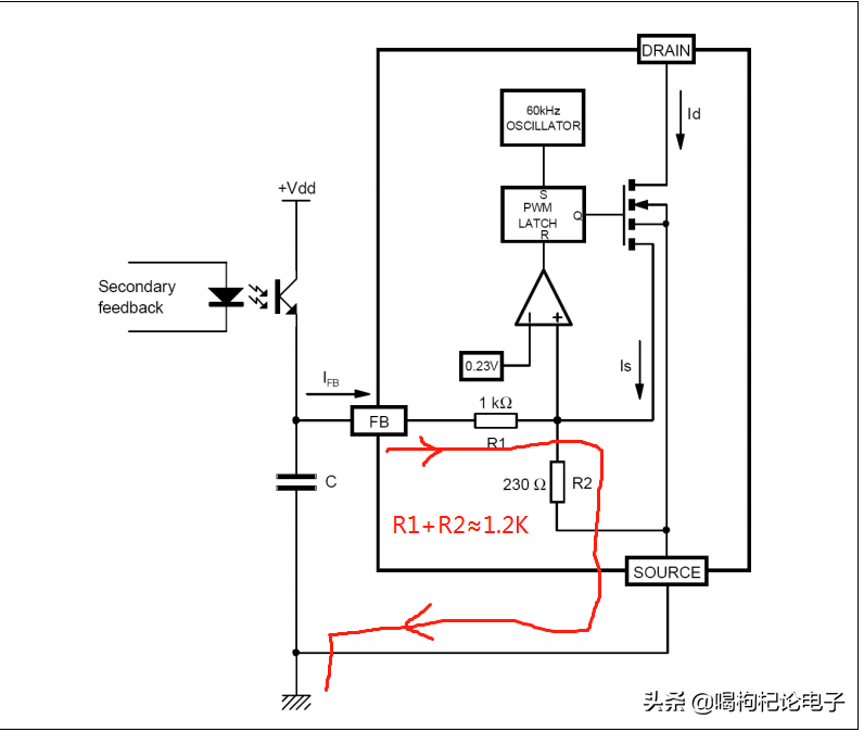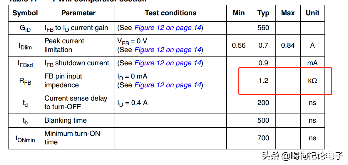 FB脚输入阻抗为1.2K,怎么来的?看下图就明白了。