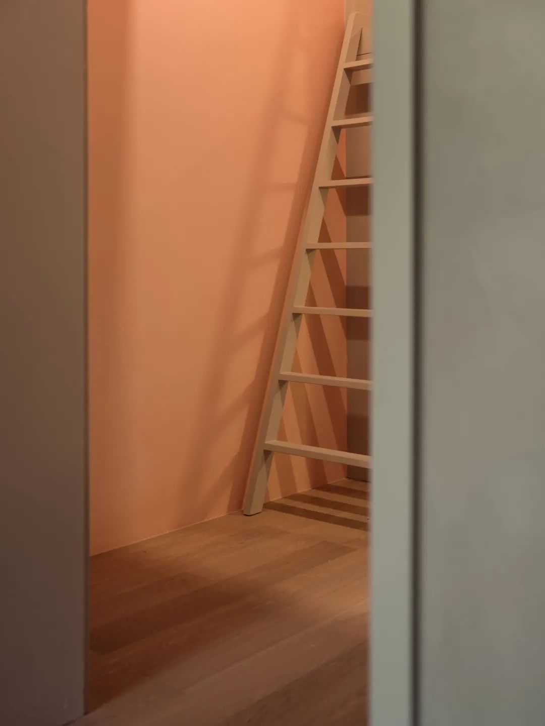 女儿房则更像是我送给女儿的一件礼物。虽然她不常生活于此,但我仍然“自私”的希望,这样的空间设置,将勾起她乐于来重庆过周末的兴趣。同时,这也将是她成长过程中的一个美好记忆。因此,滑滑梯被安排其中,并与客厅相连。