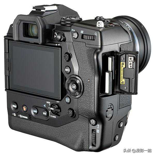 双影像处理器加LSI电路,还意味着E-M1X拥有了两个USH-II存储通道。每个处理器芯片上都有电路以支持单个UHS-II数据流,这就是为什么E-M1MarkII上的两个SD卡插槽中只有一个支持UHS-II的原因。而E-M1X有了双影像处理器,就具备了支持两个UHS-II卡的能力。这意味着其必须具备容量更大,数据吞吐速度更快的缓存系统(包括芯片、总线和电路)。