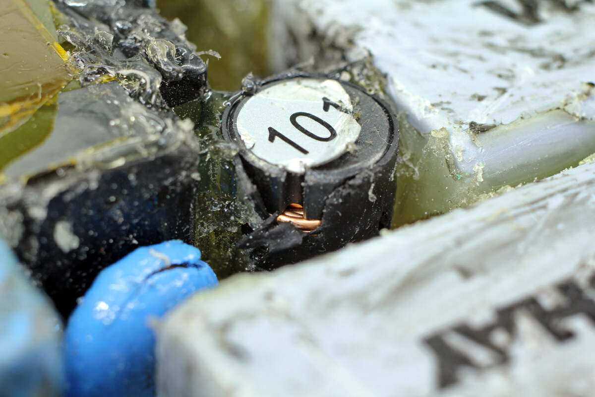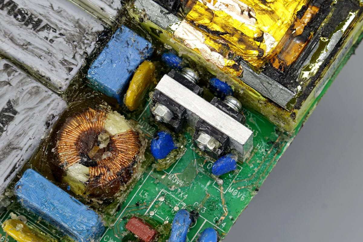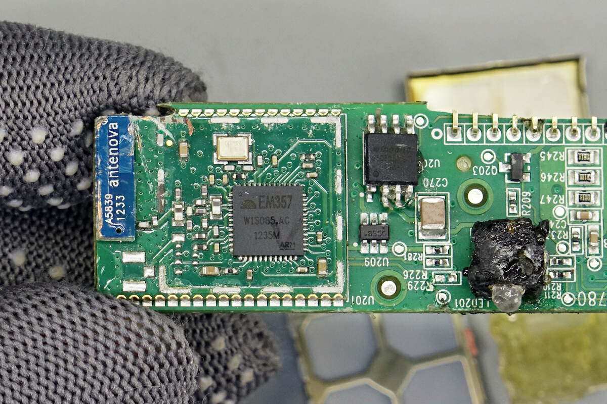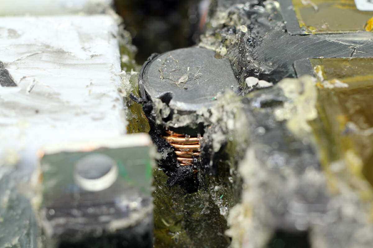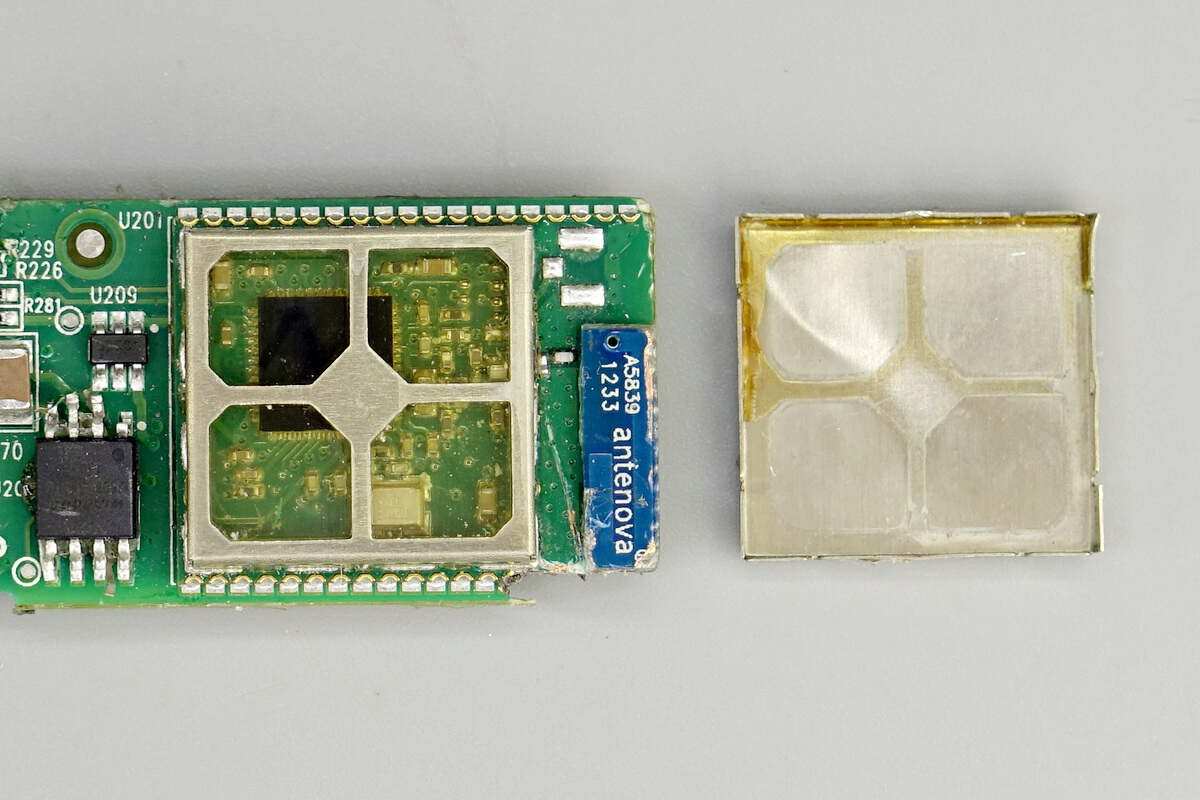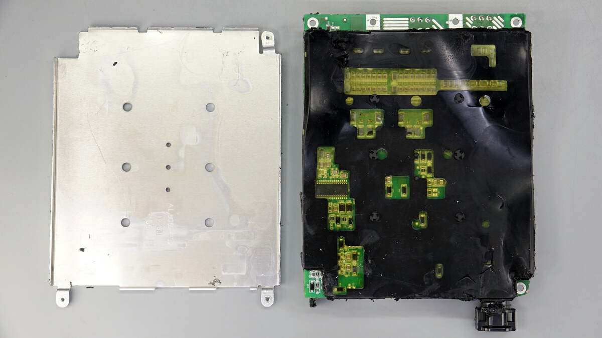 拆解取下屏蔽罩,在屏蔽罩内部也充满灌封胶。