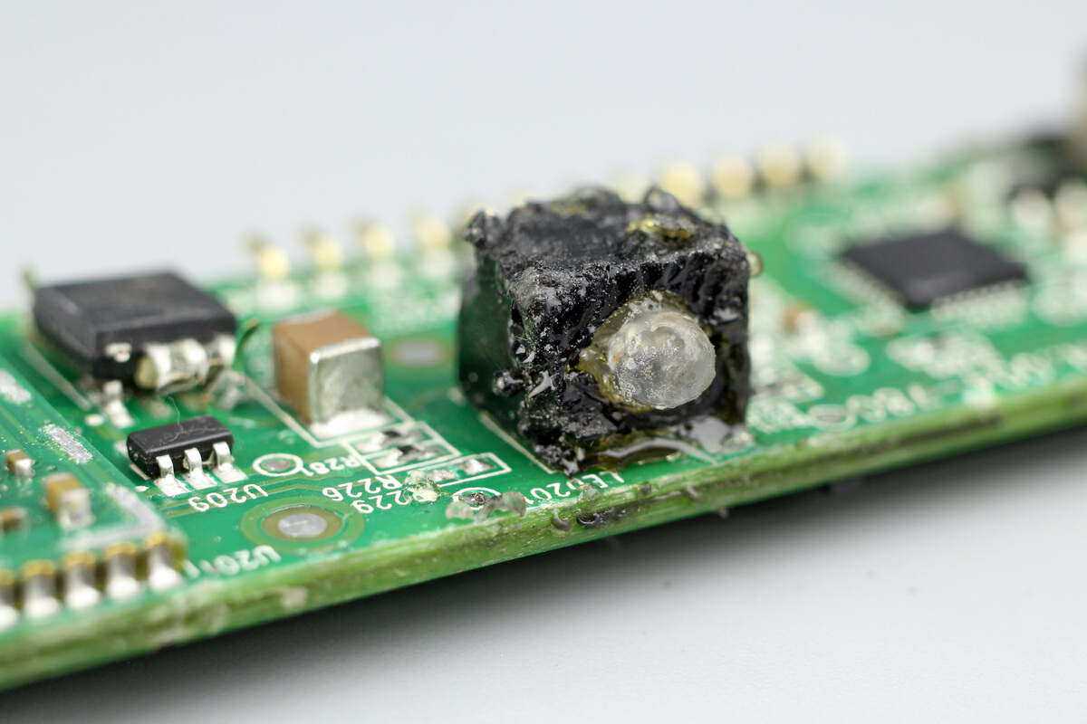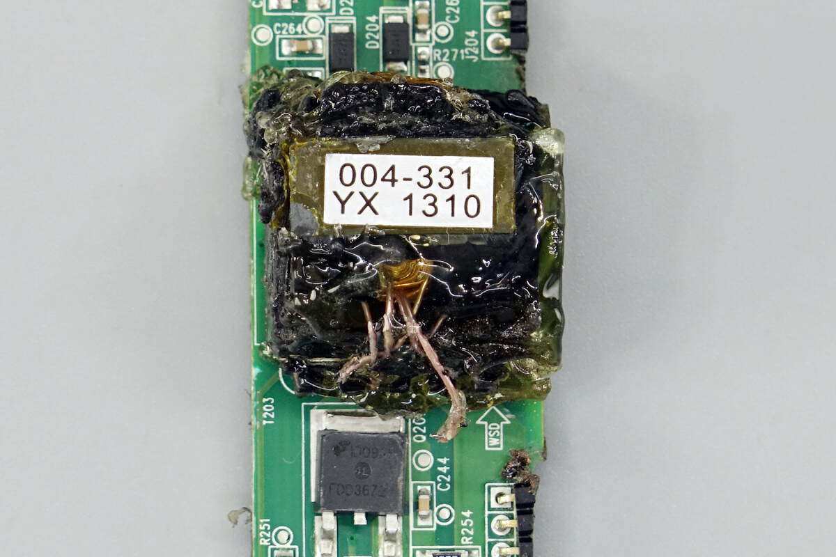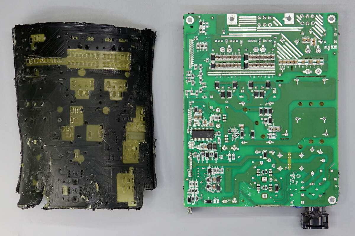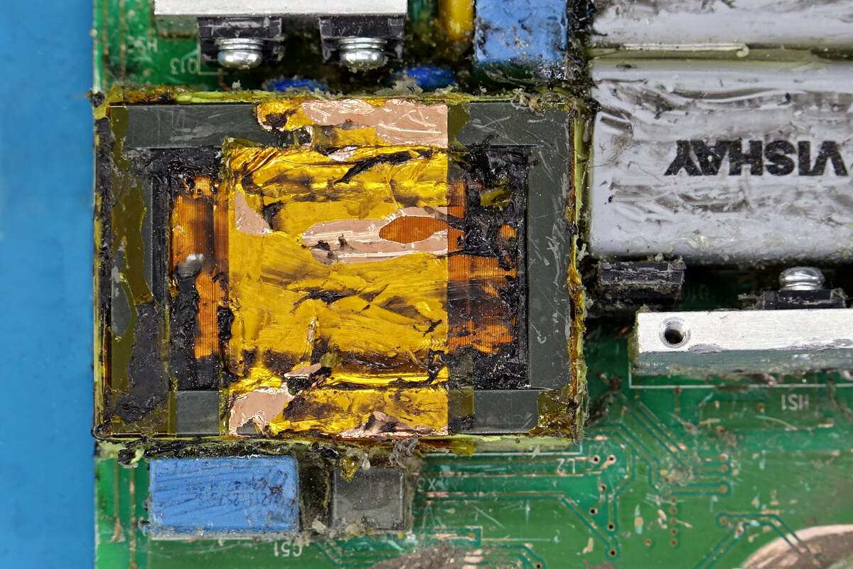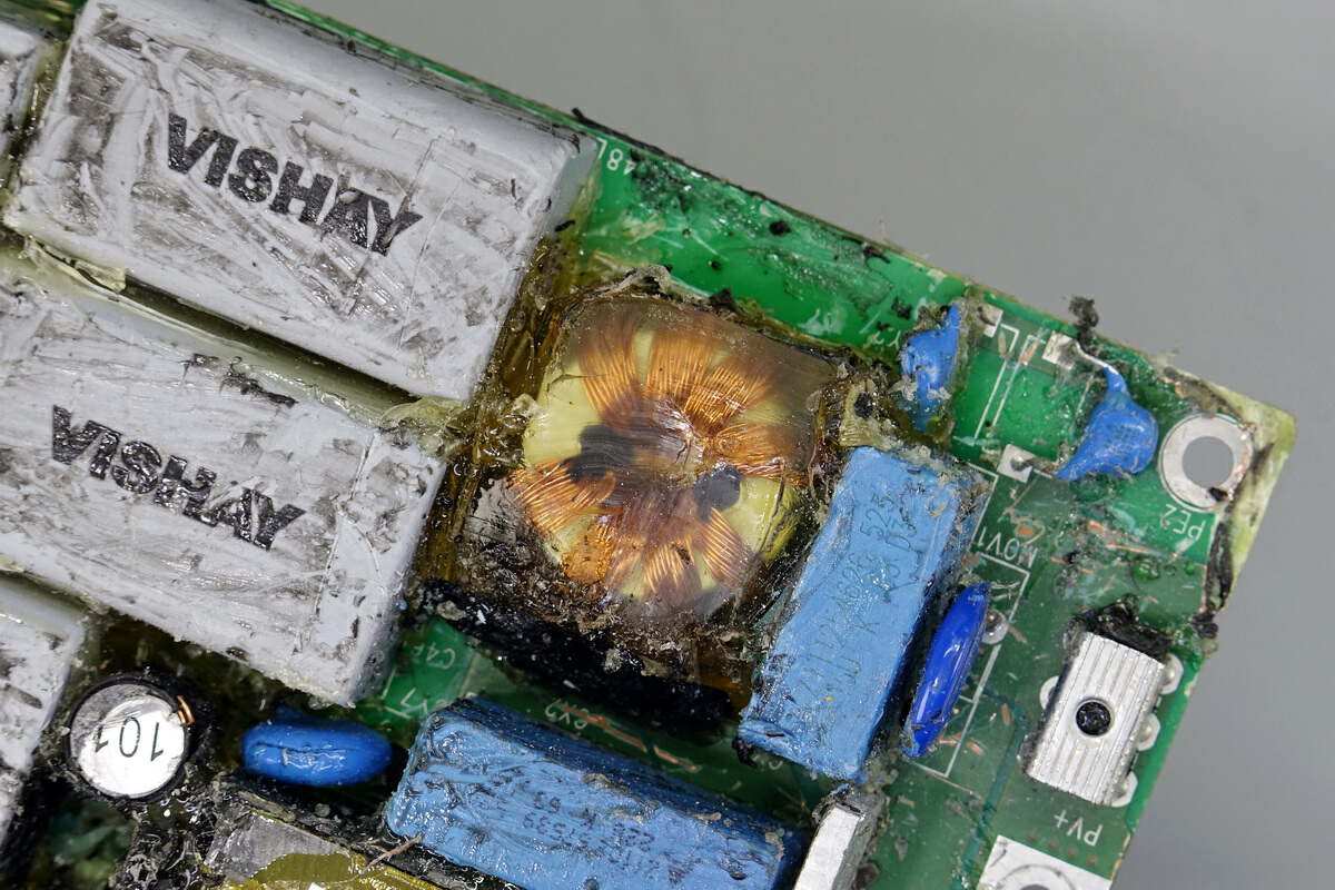 拆解取下屏蔽罩,在屏蔽罩内部也充满灌封胶。