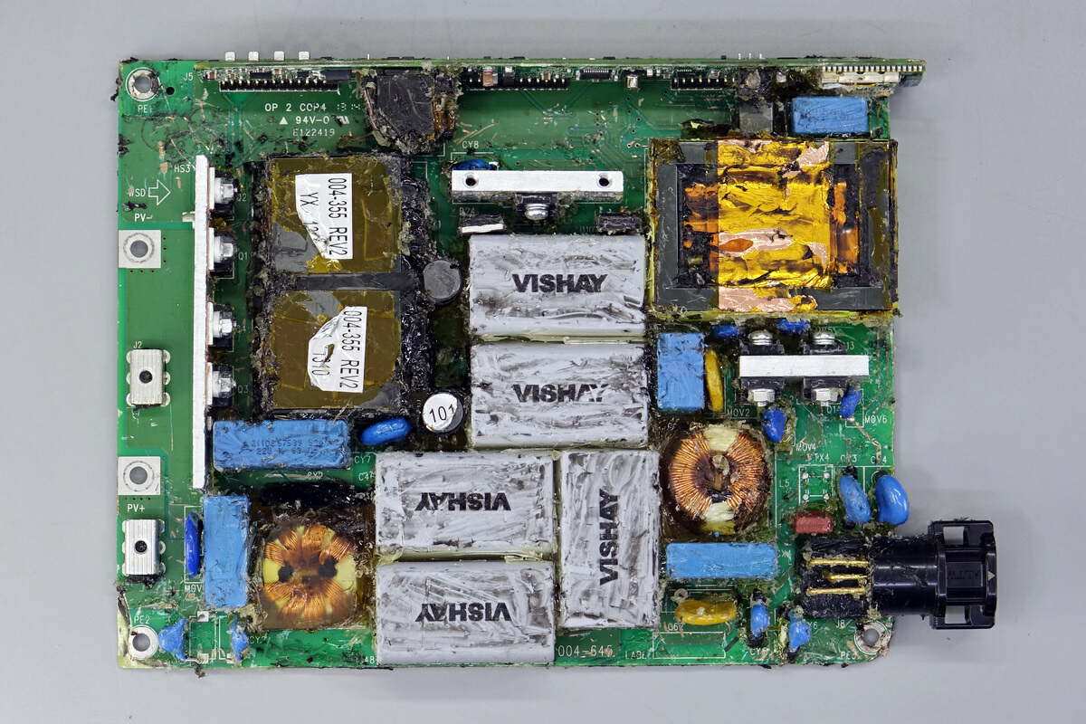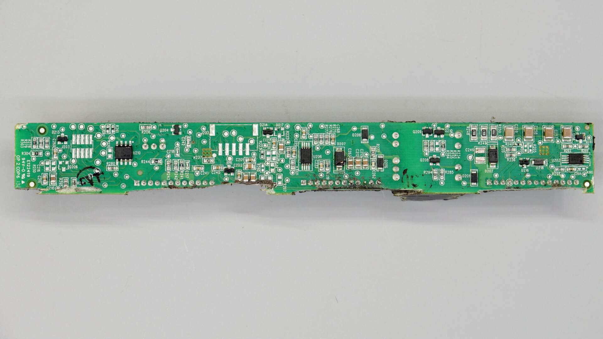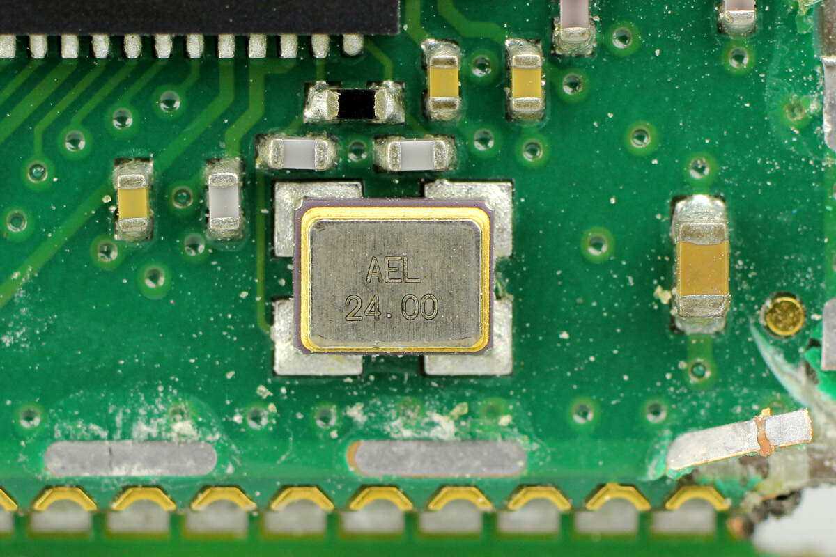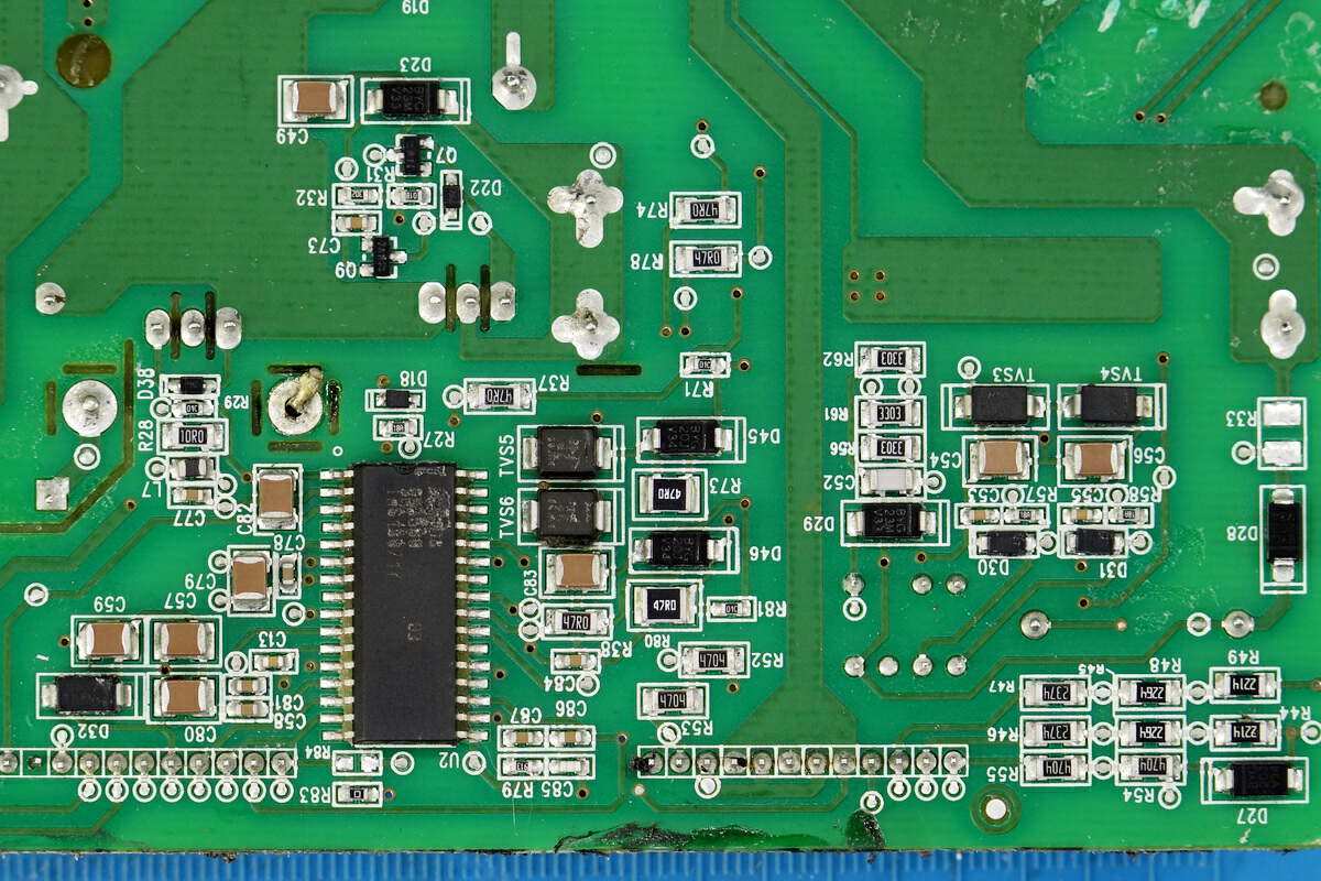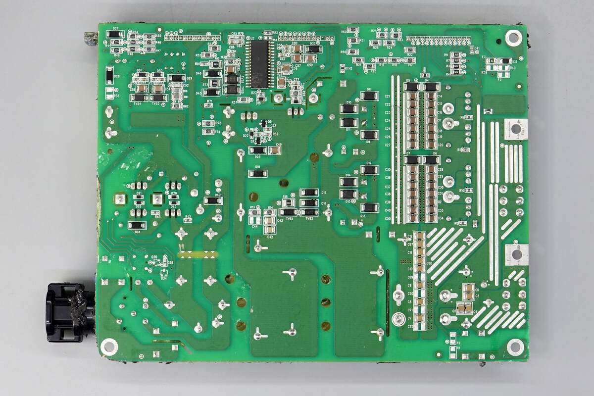 背面焊接一颗定制芯片,输入端焊接多颗滤波电容和谐振电容。
