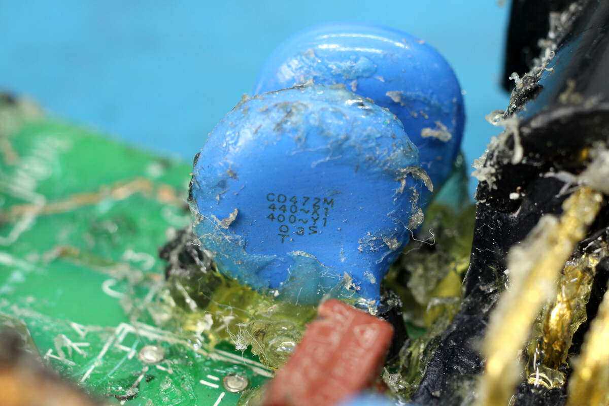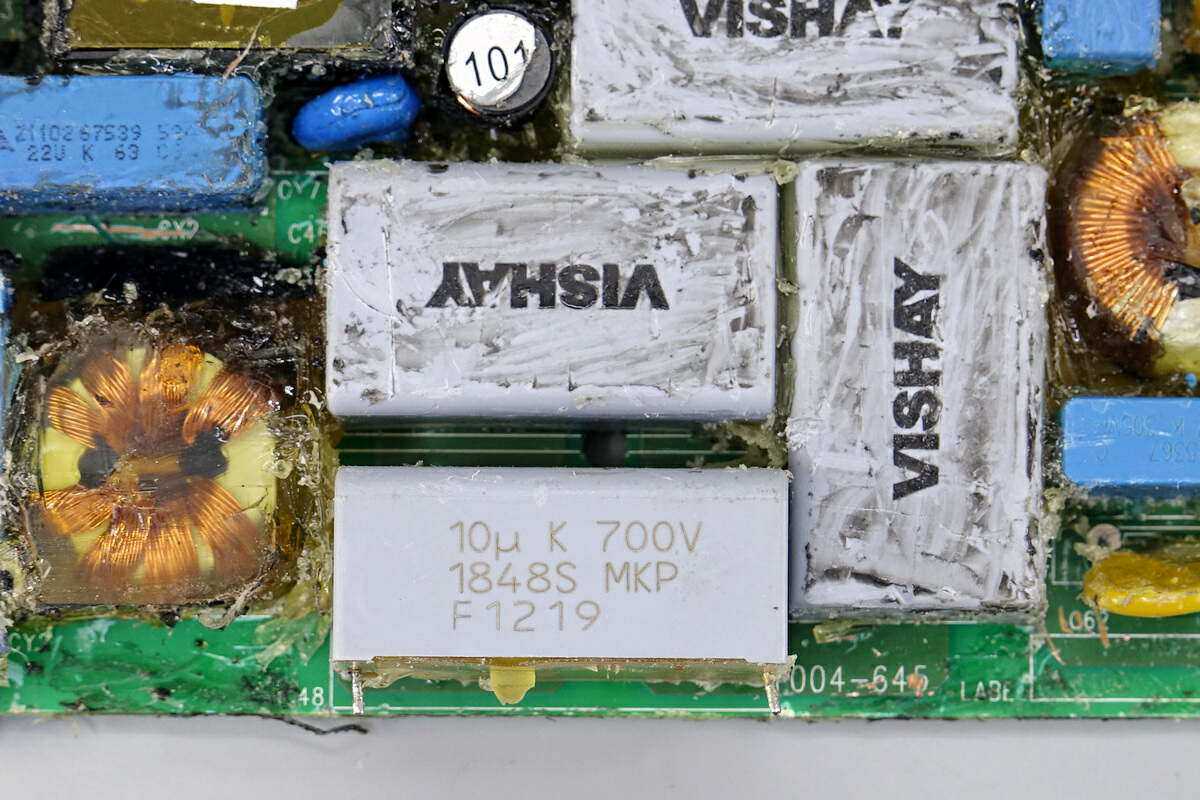 拆下一颗电容观察,电容规格为700V10μF,为MKP薄膜电容。