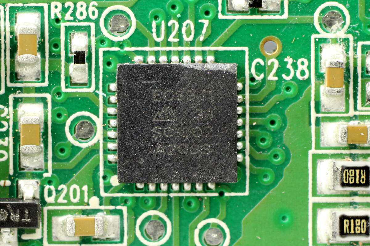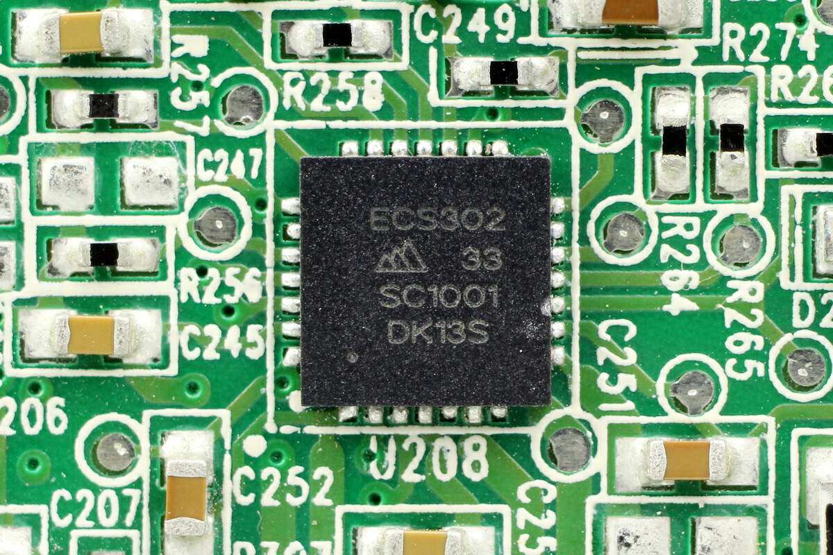 一颗定制芯片丝印ECS301,与上面两颗定制芯片对应。
