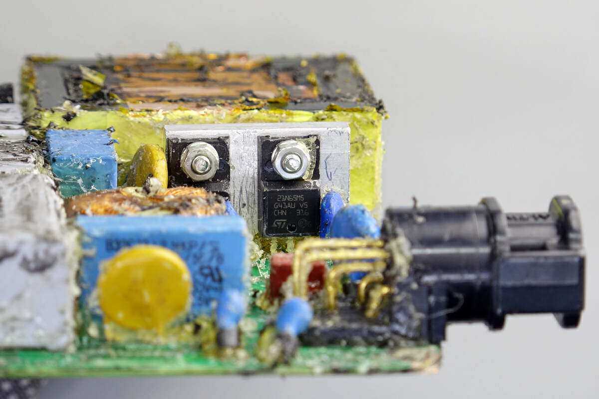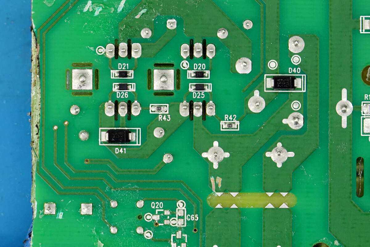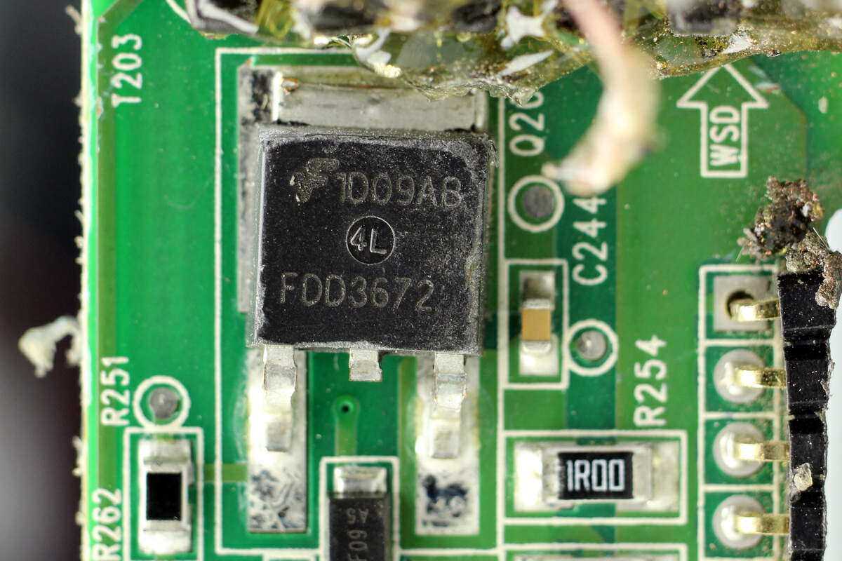 散热片另外一侧焊接一颗MOS管和一颗二极管。