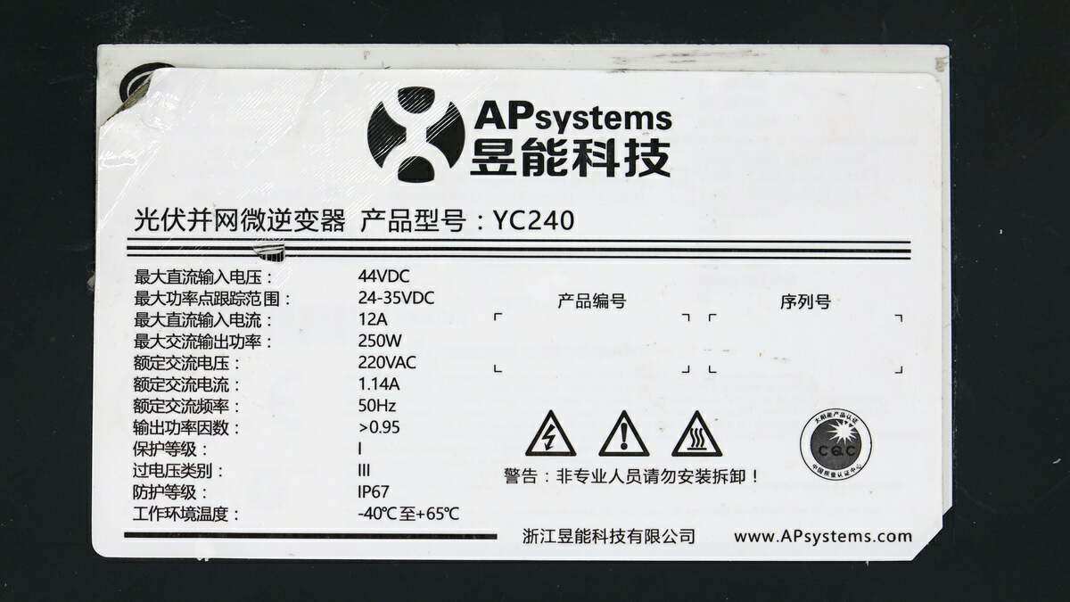 昱能科技是一家组件级电力电子设备提供商,产品包括微型逆变器,组件级关断器和储能系统。之前拆解过一款组件级快速关断器。充电头网这次淘到了一款昱能科技推出的光伏并网微逆变器YC240,这款逆变器最大输出功率为250W,输出电压为220V。直流最高输入电压为44V,支持24-35V最大功率跟踪,最大输入电流为12A。