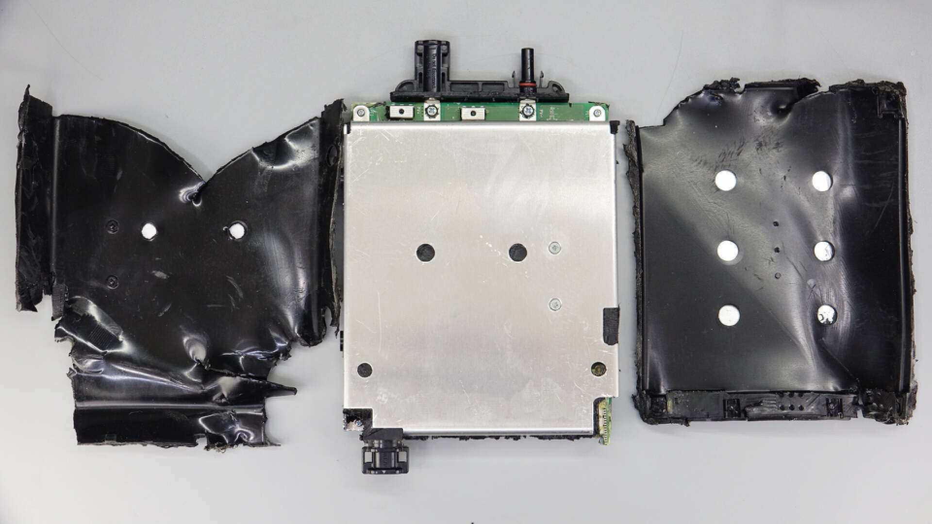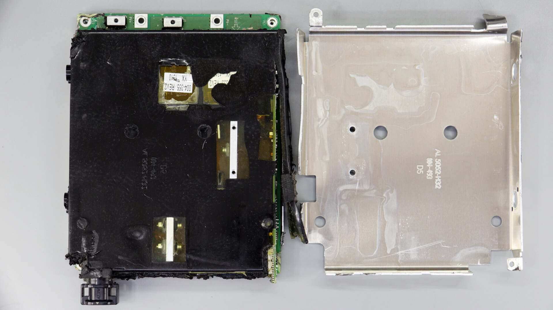 拆下PCBA模块覆盖的铝合金外壳,内部为注胶填充,铝合金外壳为AL-5052-H32材质。