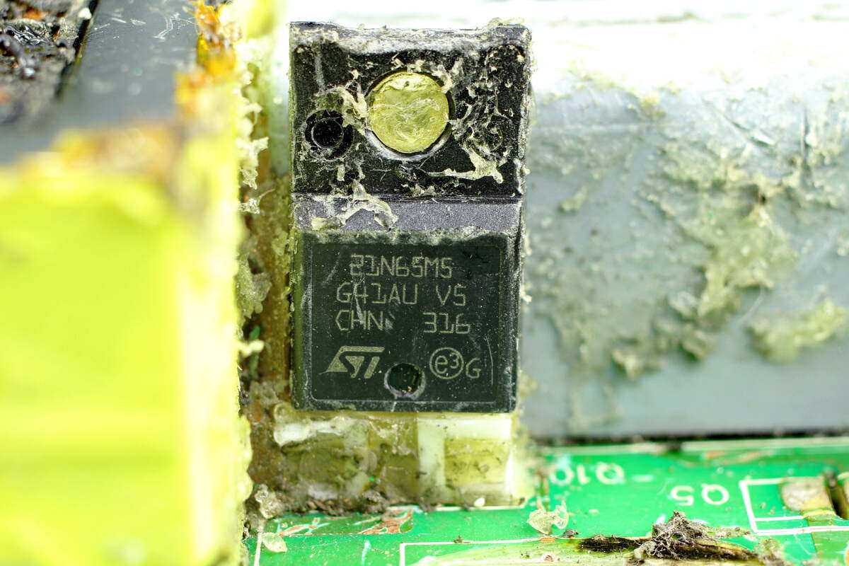 一颗MOS管来自ST意法半导体,型号STF21N65M5,耐压710V,导阻150mΩ,采用TO220FP封装。