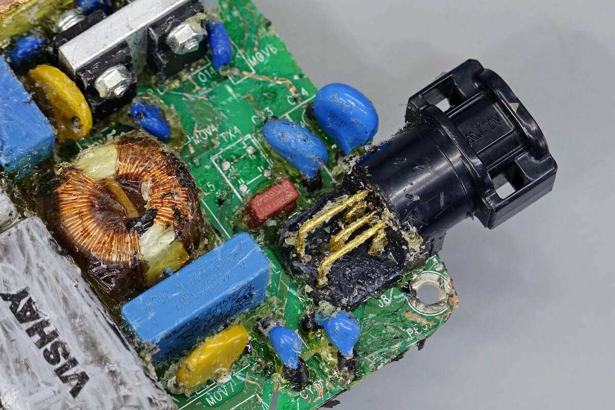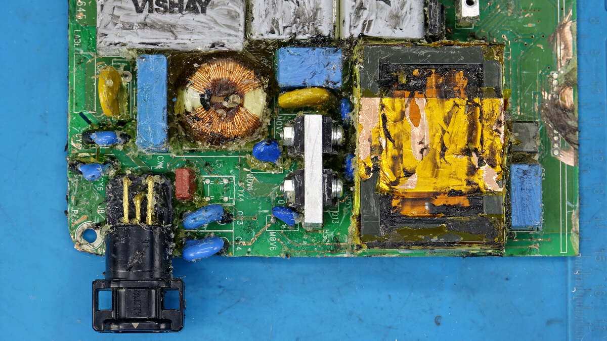 取下背面的铝合金外壳,PCB背面也同样被注胶填充。