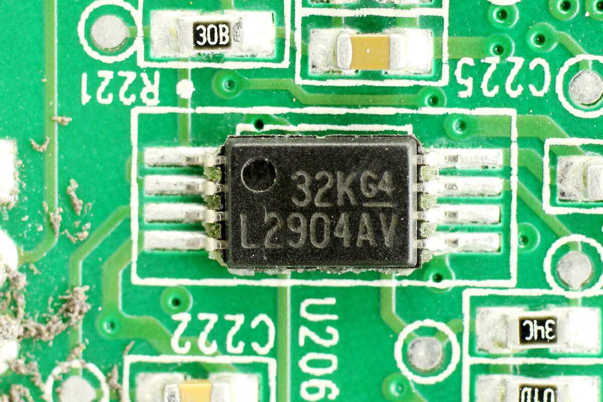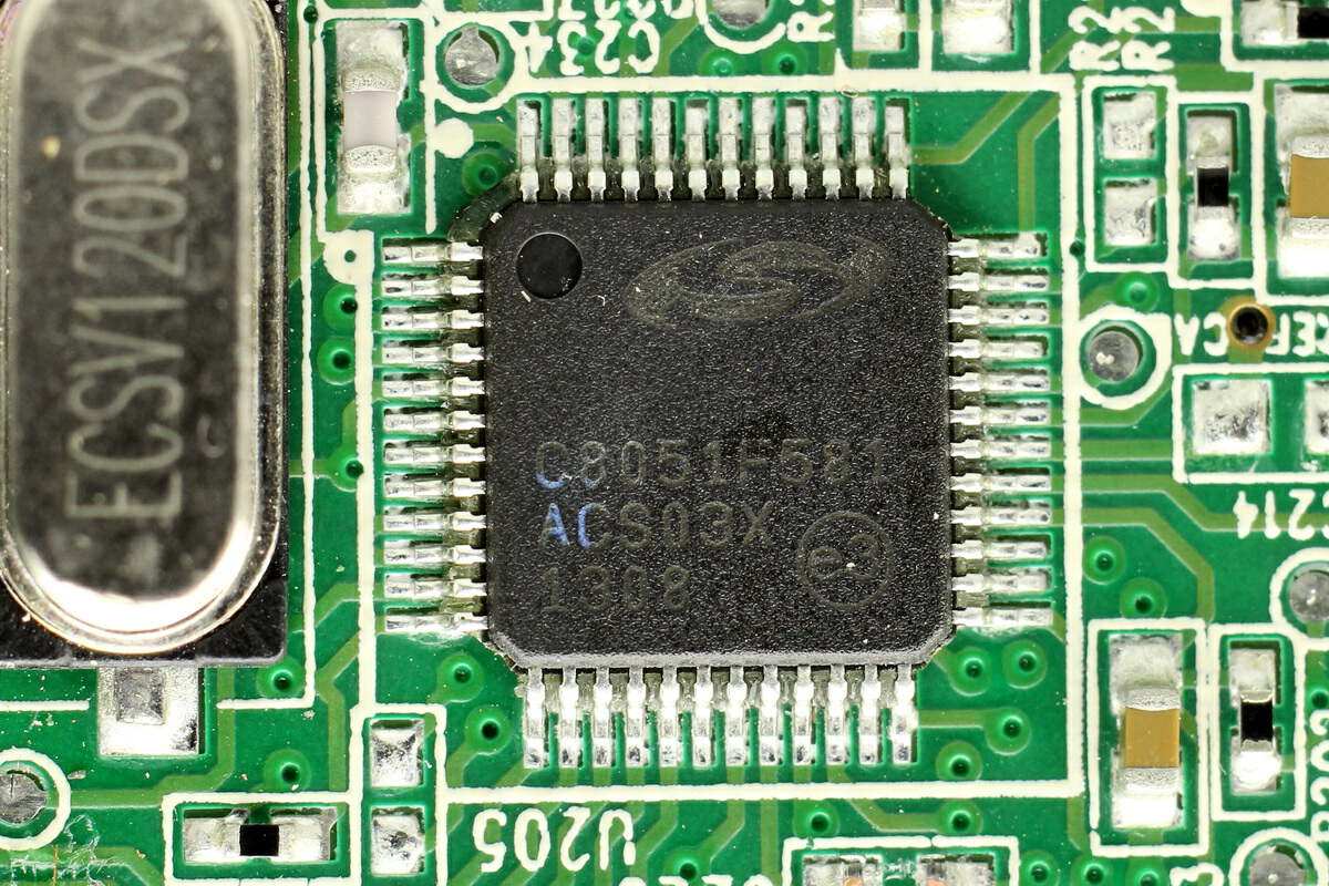 一颗MCU来自SILICONLABS芯科,型号C8051F581,是一颗混合信号MCU,内置高速8051内核。