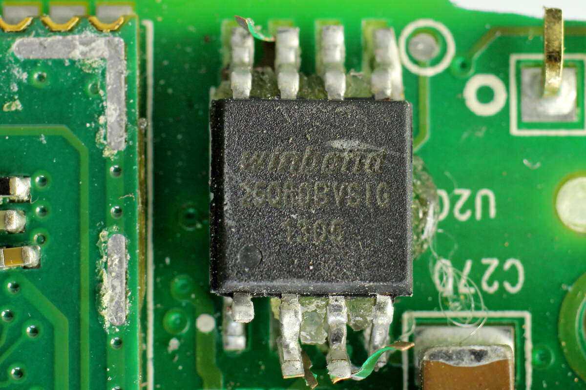 一颗存储器来自winbond华邦,型号W25Q80BVSIG,容量为1MB,采用SOIC-8封装。