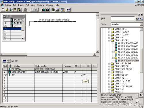 图1:PC机、CPU315-2DP与驱动装置的连接