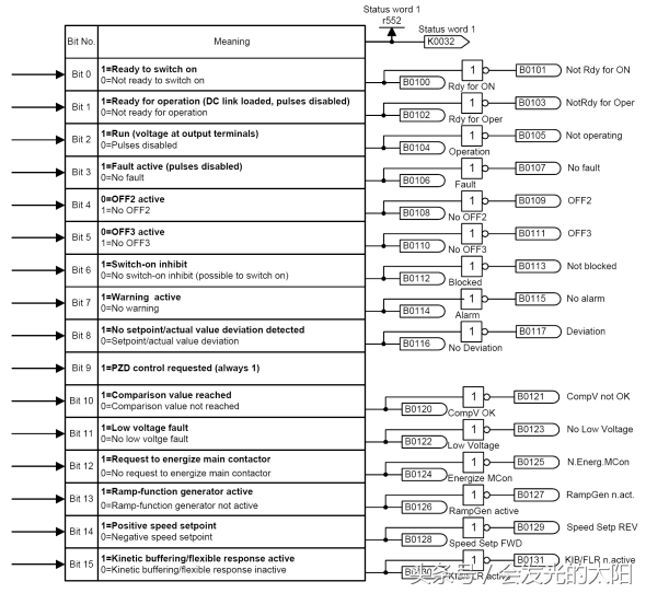 图11:MasterDrives驱动装置的状态字的含义