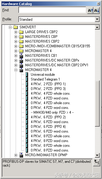 图14:硬件组态目录中MICROMASTER4驱动装置的选项