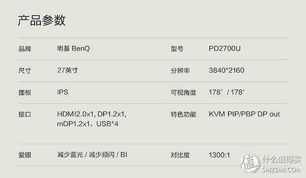 ▼明基PD2700U的屏幕尺寸为27英寸,分辨率为3840*2160(4K分辨率是由4个1080P组成),可知像素数目为164ppi。
