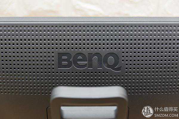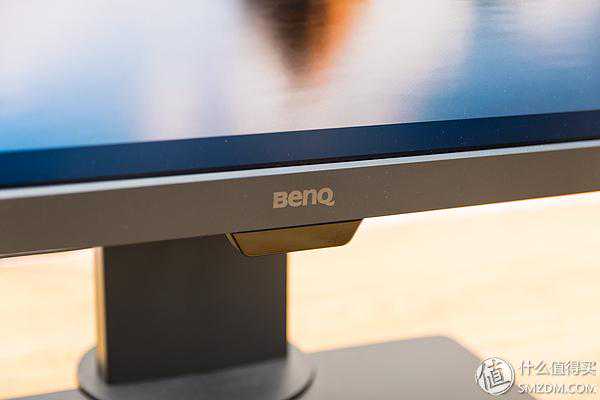 显示器面板的底部除了明基(BENQ)的Logo外,其下凸起部分是环境光源传感器,具体功能我们后文介绍。