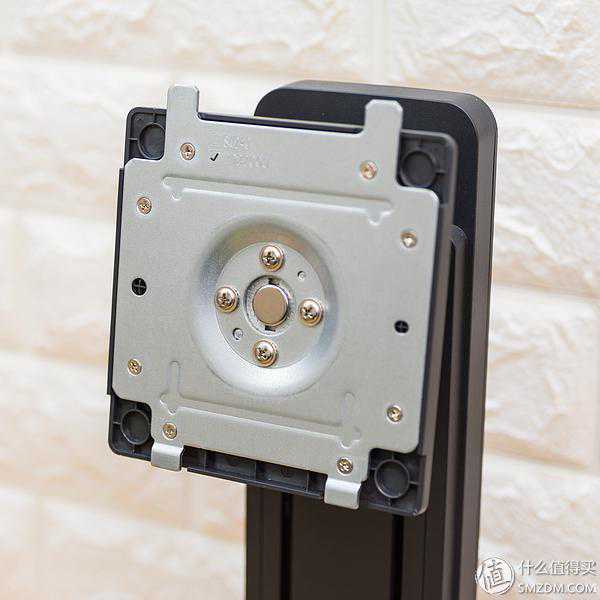 背面正中位置预留了卡扣,同时也设计了100mm×100mm的壁挂螺丝孔,也能够兼容第三方的显示器支架,可以提升桌面的利用空间。