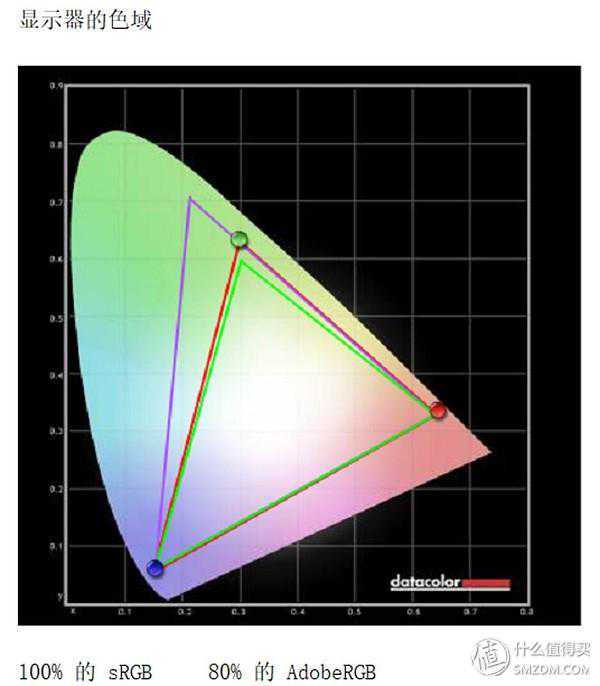 校色之后进行显示器屏幕检测,首先是色域,明基PD2700U覆盖了100%sRGB色域≈80%AdobeRGB色域。