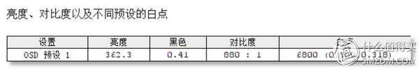 用户校色之后的最大亮度362.3,对比度为880:1,白点在6800。