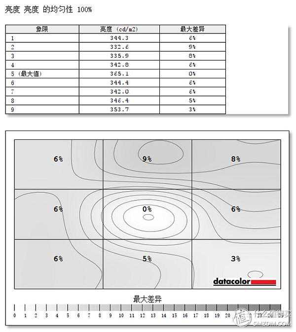 亮度方面,最大亮度362.7,对比度为870:1,白点在6800。