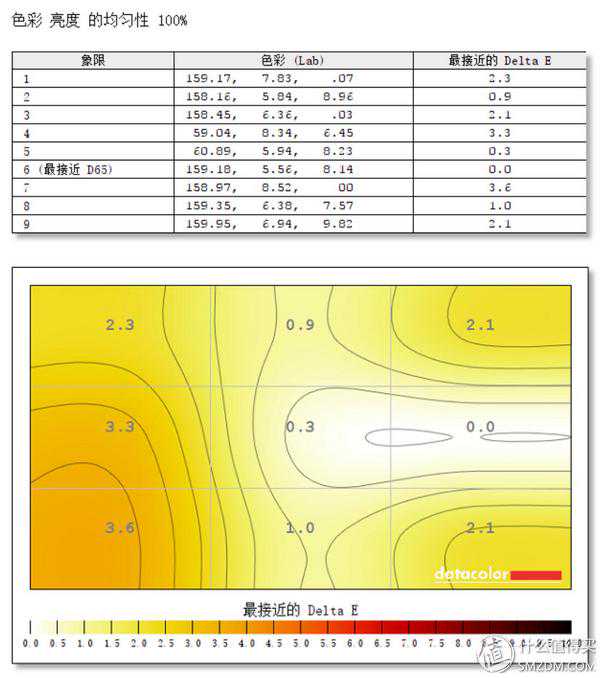 色度均匀性方面,6号区域最接近6500K,7号区域差距最大,差值为3.6%。