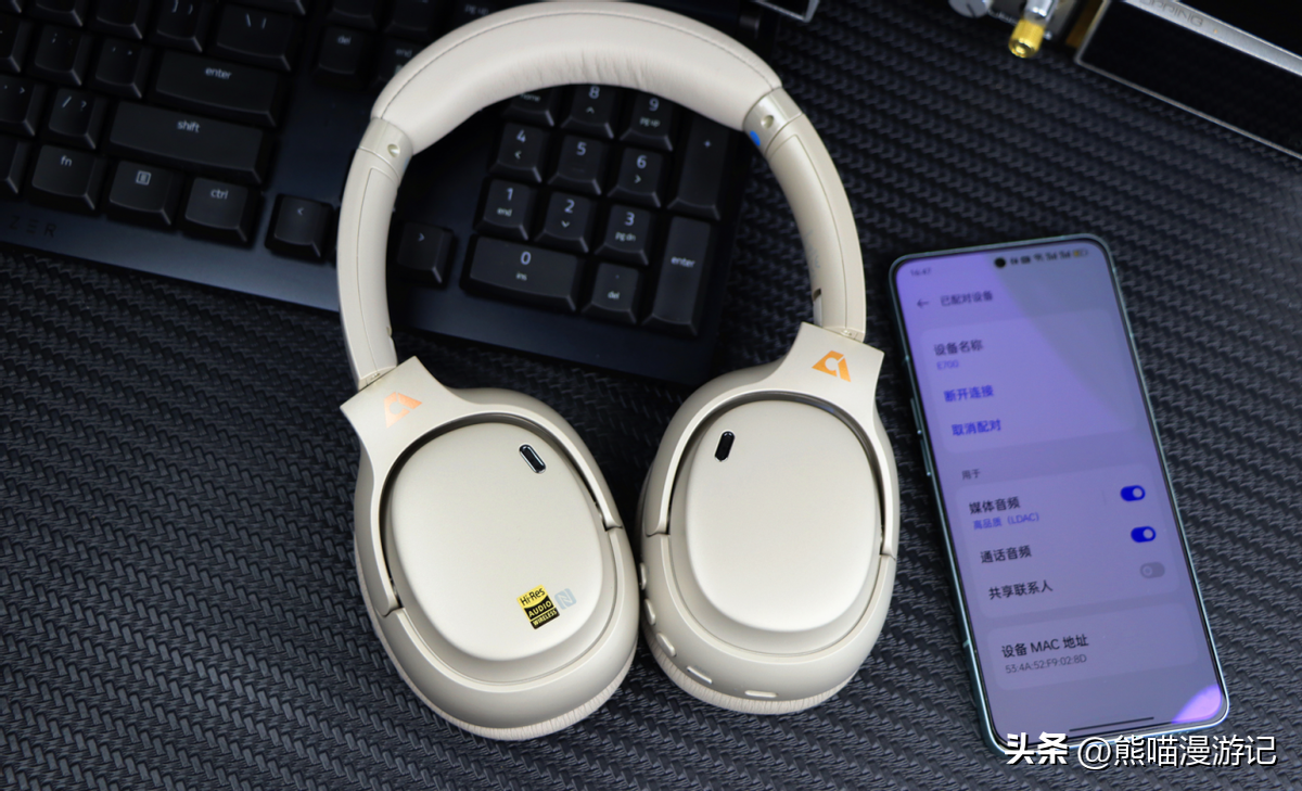 E700其实熊喵早就入手了,测评鸽了很久,一直在测试它的连接稳定性能和后期使用是否会产生低噪声,使用了一段时间后发现,E700完全听不到低噪声,背景漆黑干净,听歌也感觉不到任何延迟,连接稳定,品控还是很给力的。