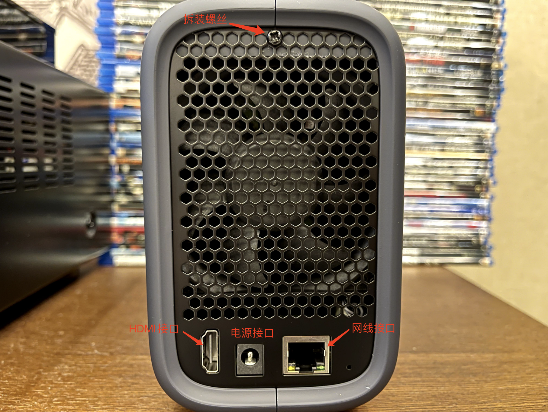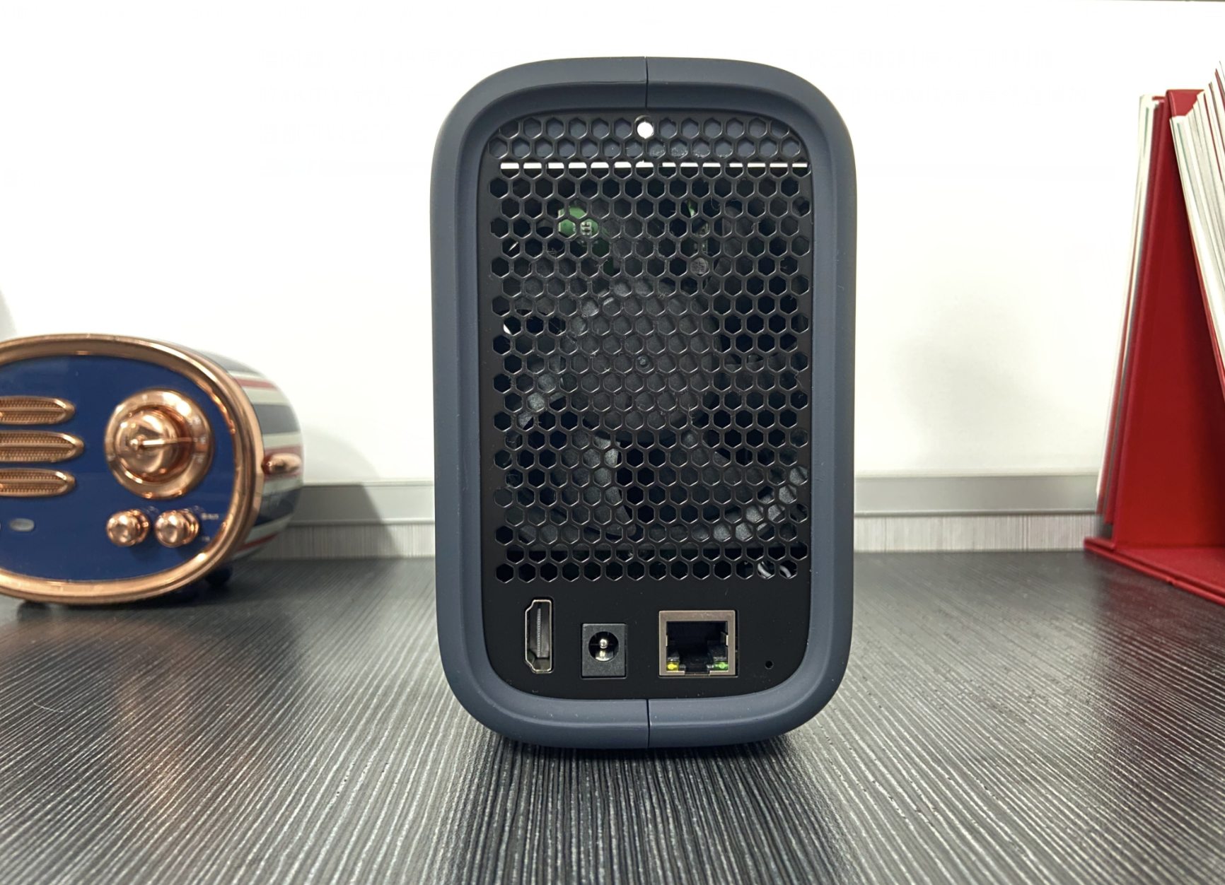 背面有HDMI接口。可以直接连线电视、投影仪的HDMI接口输出图像。在NAS中存储的各种影片,通过手机上APP可以直接进行HDMI播放,感觉像是为家庭影院而生。